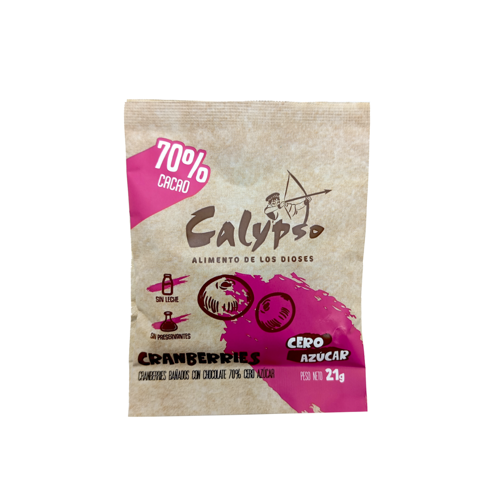 CRANBERRIES BAÑADO CON CHOCOLATE 70% CALYPSO 21GR CERO AZÚCAR
