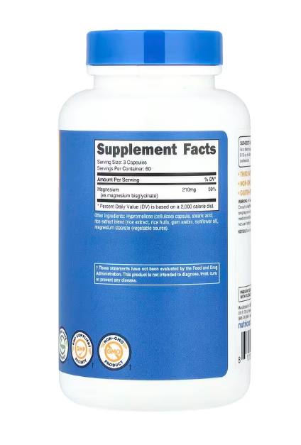 MAGNESIUM GLYCINATE CAPSULES 210MG 180CAP NUTRICOST