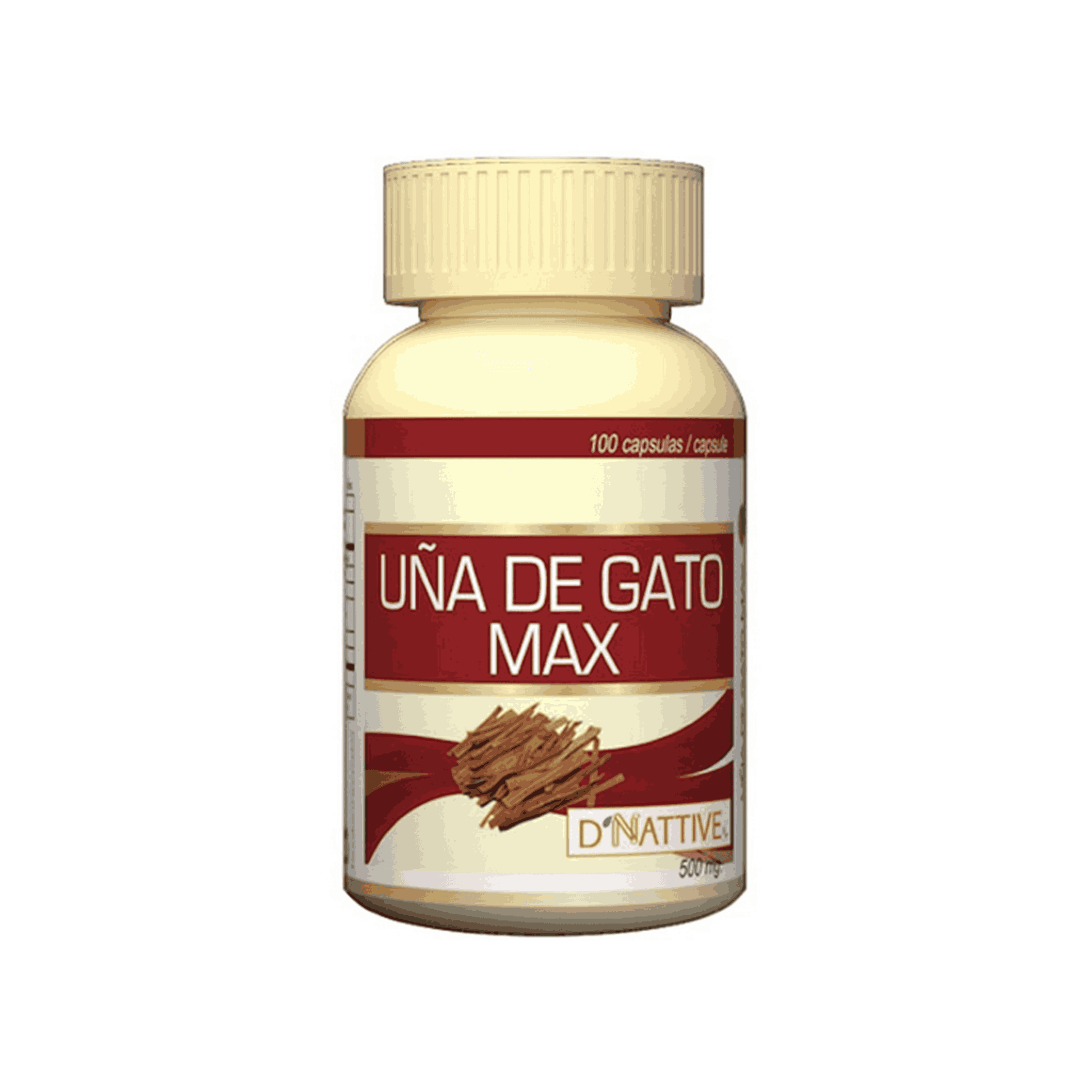 Nuestra Uña de Gato en cápsulas 100% de la marca D'Nattive, tiene una concentración de 500mg y el frasco contiene 100 cápsulas.